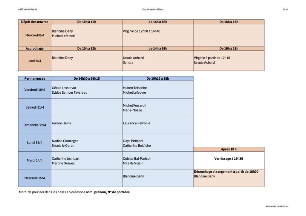 Pour assurer le succès de notre exposition, nous avons besoin de toutes les bonnes volontés!