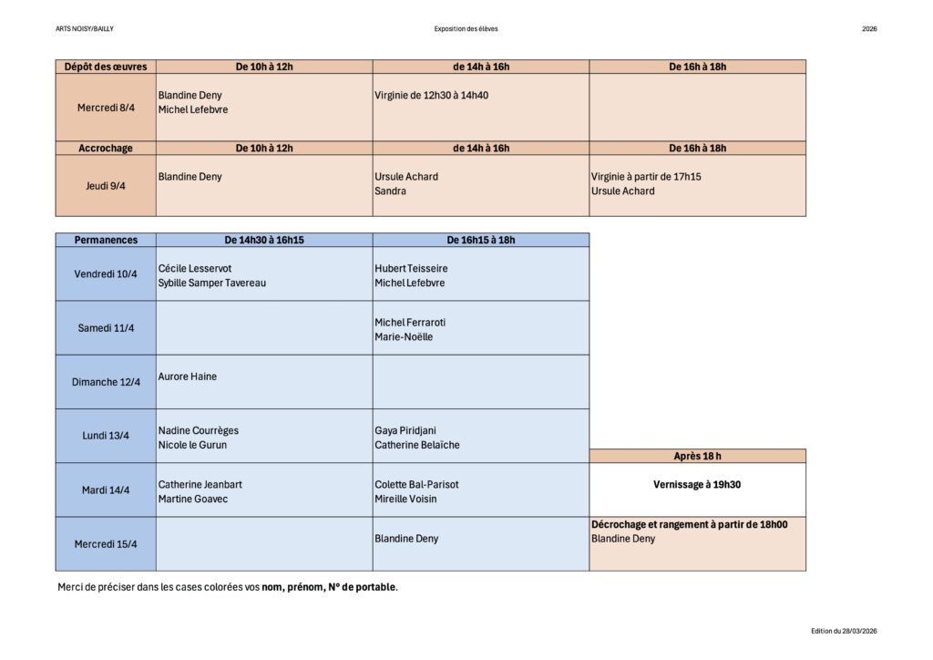 N’hésitez pas à venir donner un coup de main pour la réception des œuvres et l’accrochage les 8 et 9 avril et le décrochage le 15 avril à partir de 18h.
